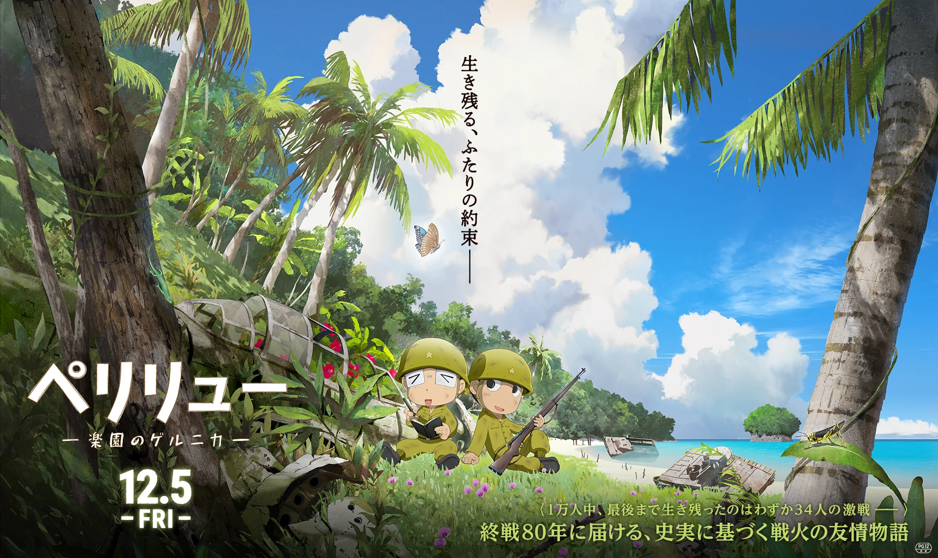 太平洋戦争末期の昭和19年、南国の美しい島・ペリリュー島。そこに、21歳の日本兵士・田丸はいた。漫画家志望の田丸は、その才を買われ、特別な任務を命じられる。それは亡くなった仲間の最期の勇姿を遺族に向けて書き記す「功績係」という仕事だった。9月15日、米軍におけるペリリュー島攻撃が始まる。襲いかかるのは4万人以上の米軍の精鋭たち。対する日本軍は1万人。繰り返される砲爆撃に鳴りやまない銃声、脳裏にこびりついて離れない兵士たちの悲痛な叫び。隣にいた仲間が一瞬で亡くなり、いつ死ぬかわからない極限状況の中で耐えがたい飢えや渇き、伝染病にも襲われる。日本軍は次第に追い詰められ、玉砕すらも禁じられ、苦し紛れの時間稼ぎで満身創痍のまま持久戦を強いられてゆく――。