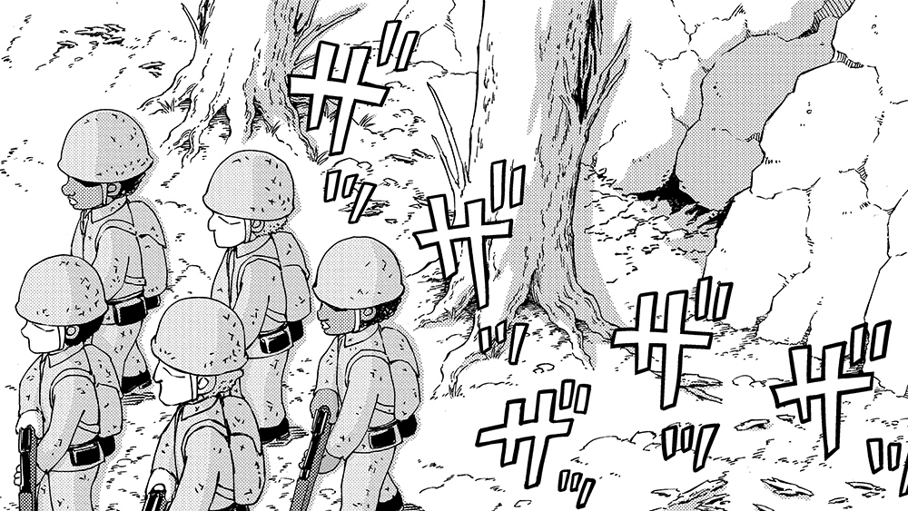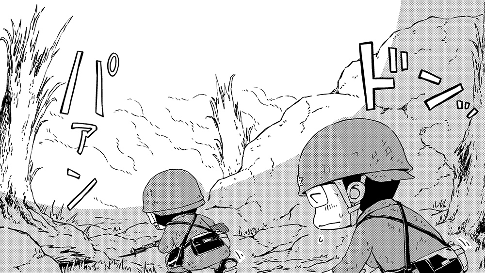 本作のベースにさせていただいた土田喜代一さんは、聞く人に負担のないように自分の体験をユーモアを交えて語って下さる方でした。ただ、つらい戦争の体験でも面白おかしく語っている彼が、亡くなった戦友の話になると急に泣き出してしまうのです。普段は本当に朗らかなかたなのに、戦友について話すと突然そういう風になってしまうこと――これが実際に戦争を体験された方の生の感情かと思い知り、その重さは描くうえで非常に大切にしていました。
