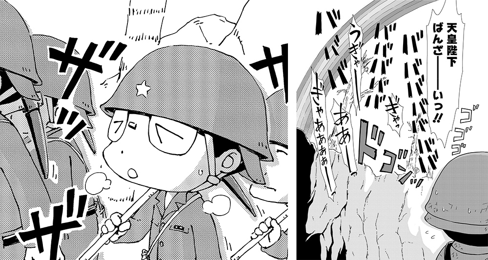 自分が意識していたのは、可愛いのはキャラクターのデザインまでということです。それ以外の戦場で実際に起こったことは、デフォルメしてごまかしたりするのではなくリアルに描写していこうと決めていました。逆にいえば、リアルに描写するぶん、読者の方々が「キャラクターが可愛いから、きつい現実の話でも読んでいける」と思えるような入り口や癒しになるように気を配りました。