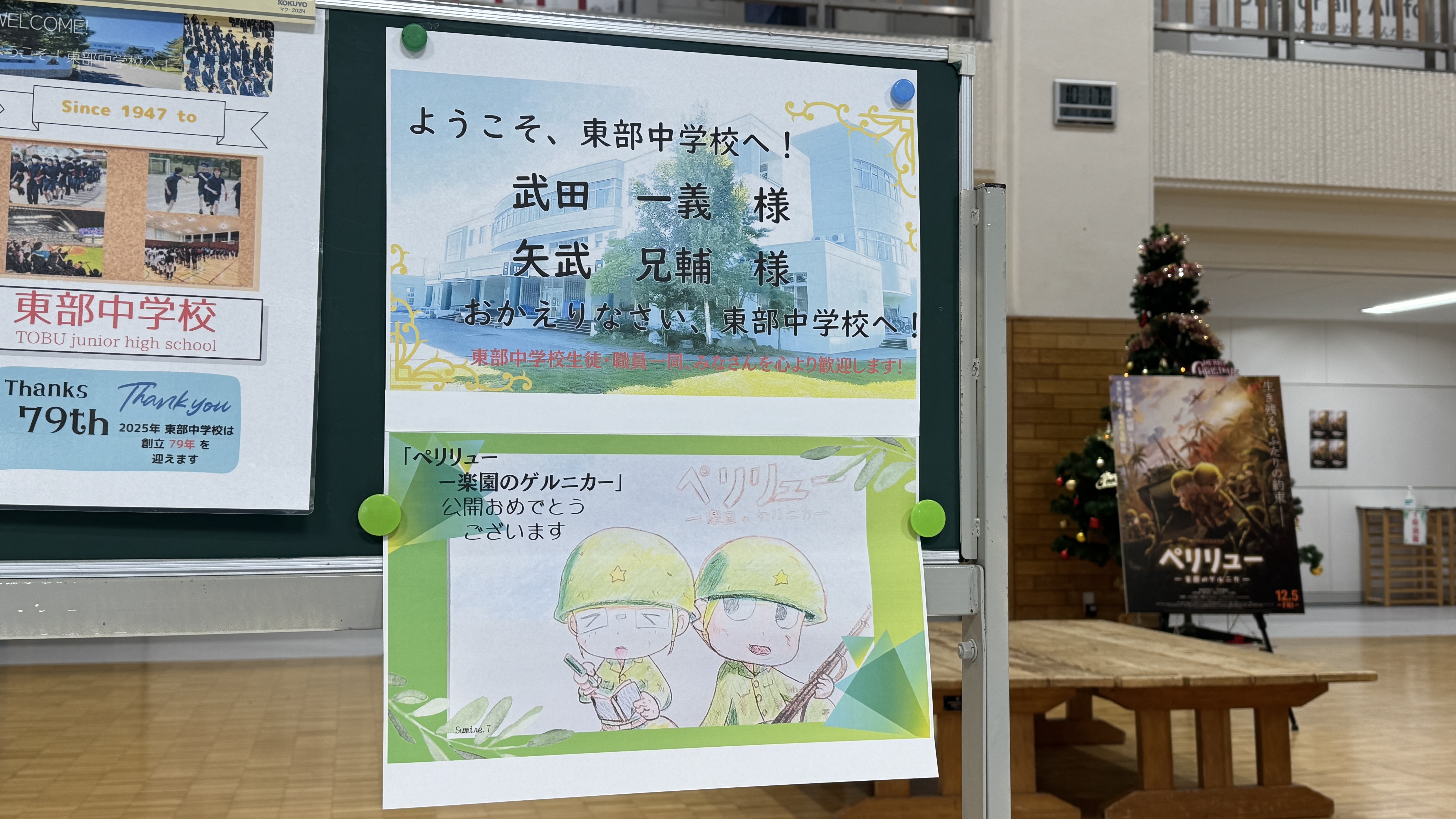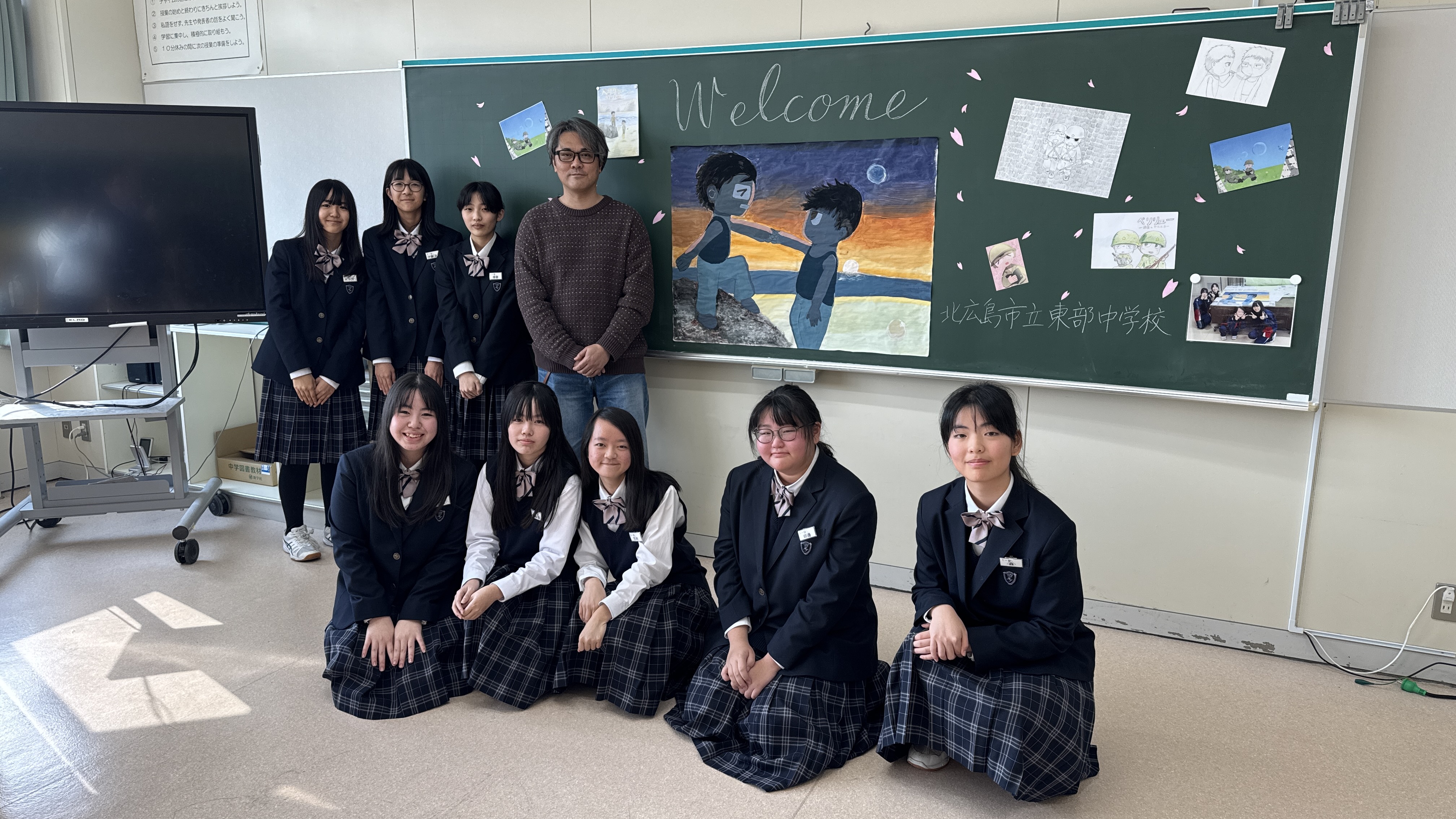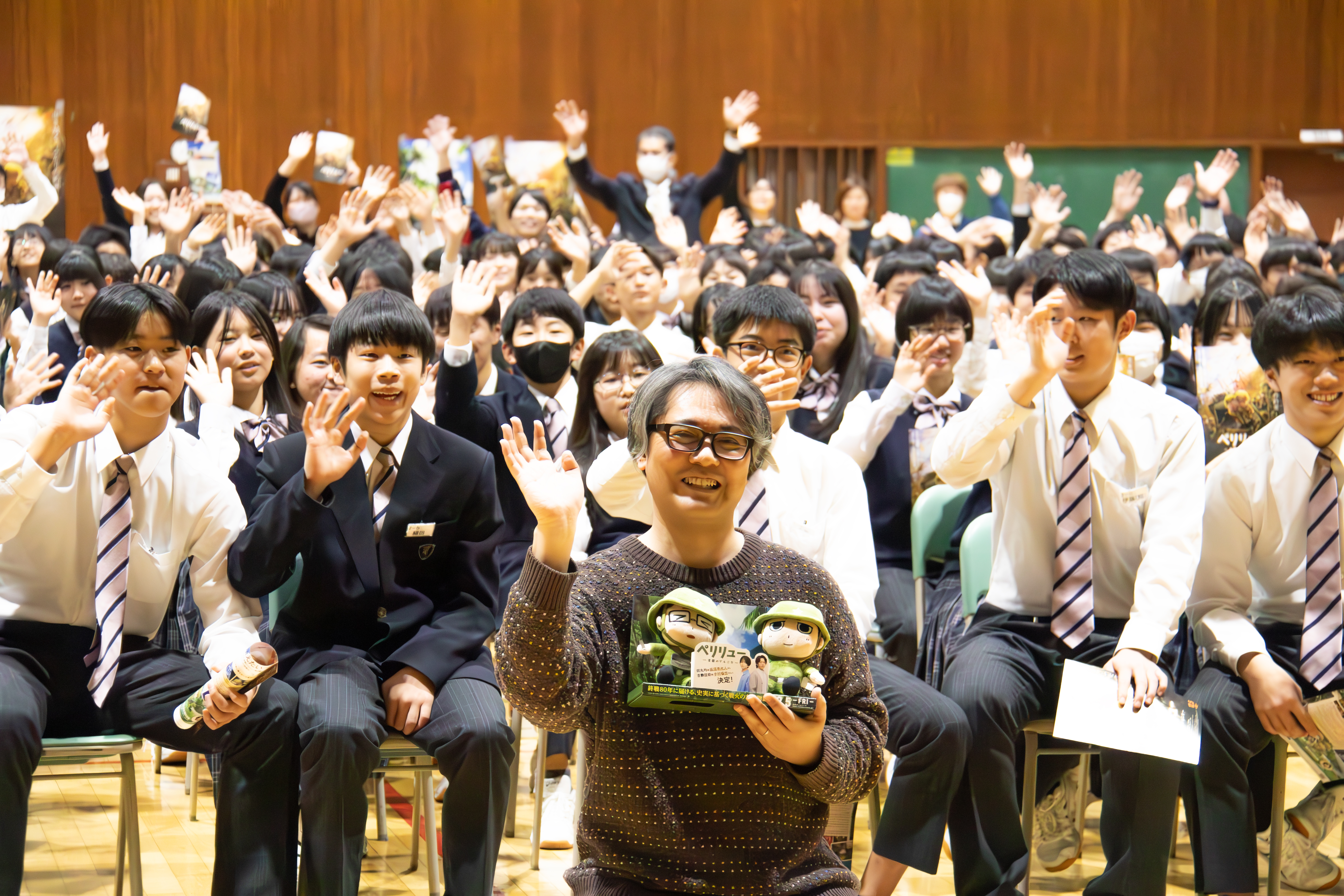 12月1日(月)に北広島市立東部中学校(北海道)にて本校中学生を対象に試写会とトークイベントを実施、原作・共同脚本を務めた北海道岩見沢市出身・武田一義が登壇しました。