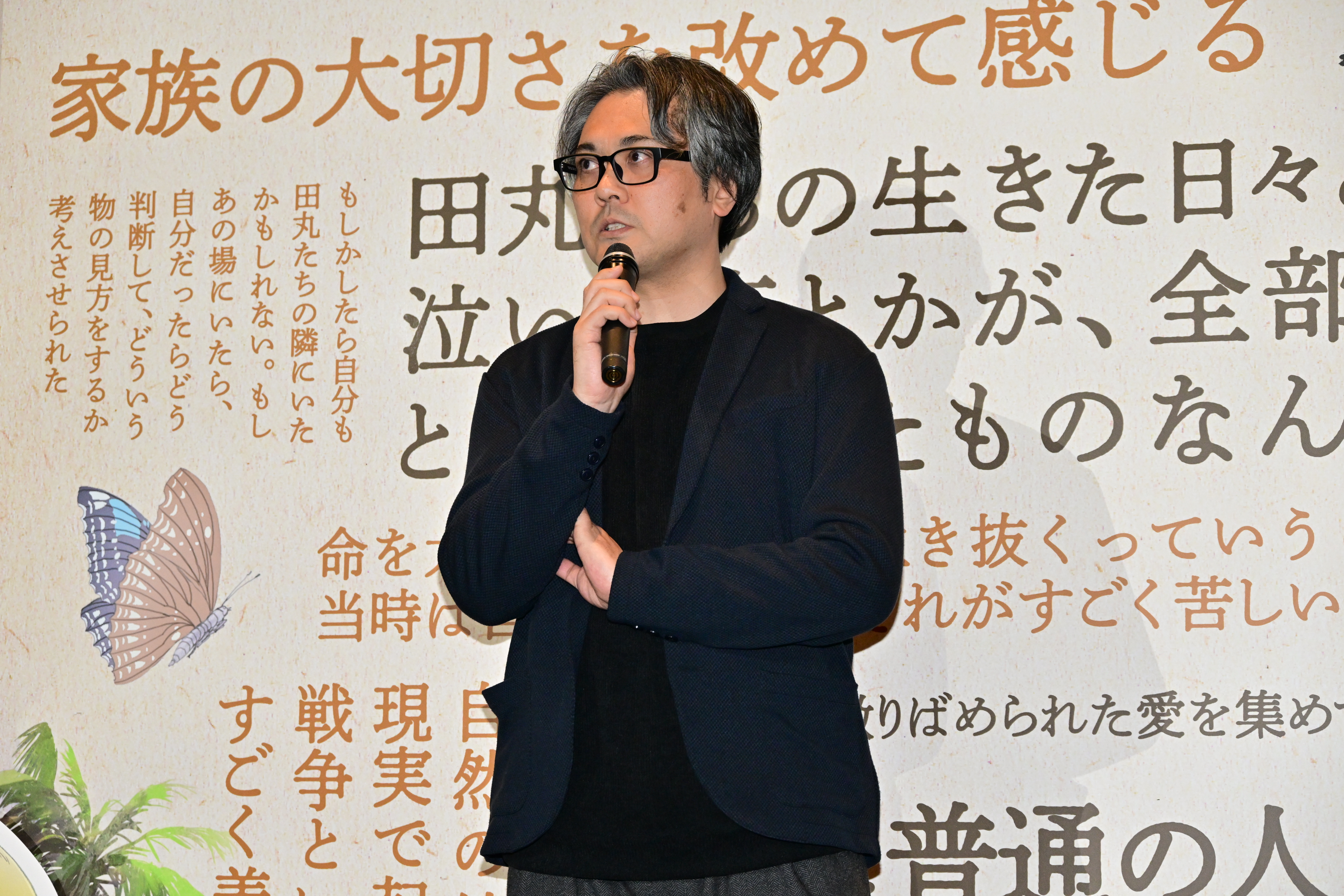 作品の反響について板垣は「子供の頃に祖父から戦争の話を聞いた事を思い出したとか、そういう声を頂く。そんな記憶が本作をきっかけに呼び起されて、戦争に対する理解が進むきっかけを作れたのではと思う。それこそがこの作品を世に届ける意味の一つになって来るので嬉しいです」としみじみ。一方、中村は「僕は友達が少ないので反響と言われても…」とボケつつ「この登壇前に関係者から『SNSで好意的な受け止め方をしている声が多い』と聞いたので良かったなと思います」と高評価に笑顔を見せました。