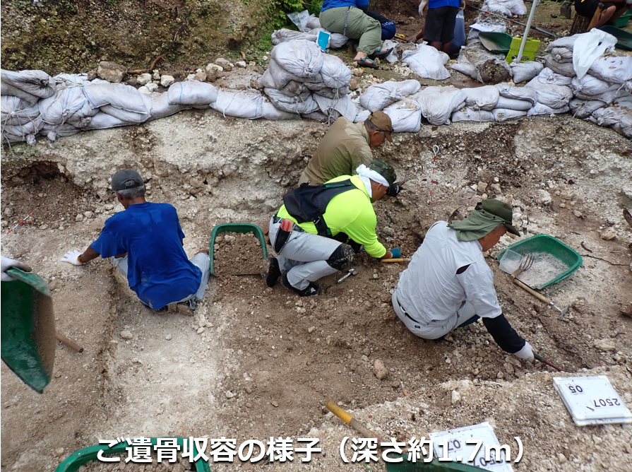さらに、ペリリュー島をはじめとする戦場となった各地には今でもまだ多くの遺骨が眠っており、厚生労働省の元で遺骨収集が進められています。水戸二連隊ペリリュー島慰霊会代表理事の市原直氏が登壇し、実際にどのように遺骨収集が進められているか、最新の遺骨収集の報告が行われました。戦争によって海外で命を落とした戦没者は約240万人、日本に遺骨が戻せていない「未収容者数」は現在112万人だといいます。市原氏は「ペリリュー島では1万200人が戦没、現在は7800人の収容が完了しており、12年前に集団埋葬地の場所を記した記録が発見され、2年前にその場所が特定されました。現在はその場所での収集に注力しています。来年度、再来年度でそれぞれ500柱をお迎えできる予定です。」と今後の活動についての具体的な目標を伝えました。
